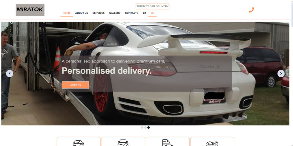 Сайт для компании в Праге, которая занимается частными пассаржирскими перевозками. Заказ на простой сайт на нескольких страницах, информирует о видах транспортных услуг, стоимости. Дает возможность заказать нужный транспорт через контактную форму. Фон в виде шоссе, основные цвета желтый и голубой, 3 языка.